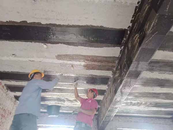 石家莊贊皇學校結構補強板底粘碳纖維加固